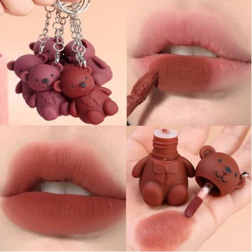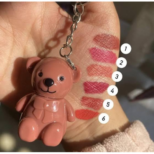 Teddy bear key chain long-lasting waterproof lipstick, 6 piece