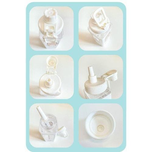 Dual Cap Water Bottle with Straw, Strap Anti-Leak Water Bottle with 520ml Capacity